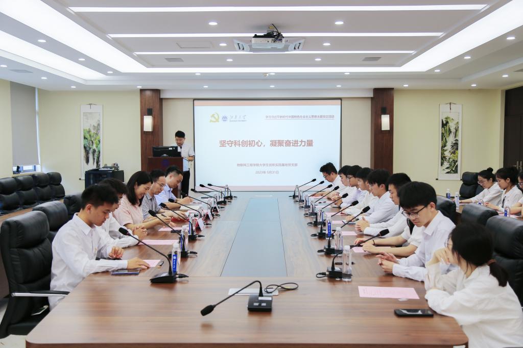 为深入开展学习贯彻习近平新时代中国特色社会主义思想主题教育,5月31日下午,物联网工程学院大学生创新实践基地党支部(以下简称“大创党支部”)在学院B222开展“坚守科创初心,凝聚奋进力量”主题党日活动。江南大学党委常委、副校长堵国成,物联网工程学院党委书记耿向阳,物联网工程学院院长、大创党支部书记栾小丽,本科生辅导员曾磊以及大创党支部全体师生党员参加活动。活动由支部纪检委员、研究生辅导员王志顺主持。