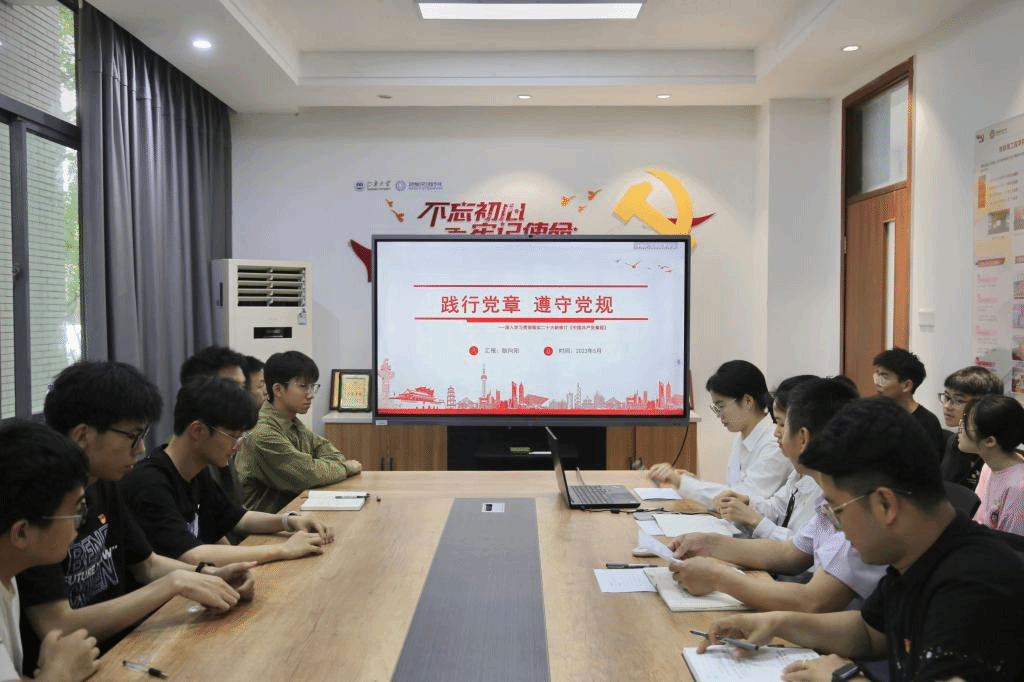 为深入开展学习贯彻习近平新时代中国特色社会主义思想主题教育,努力在以学铸魂、以学增智、以学正风、以学促干方面取得实实在在的成效,5月26日下午,物联网工程学院大学生创新实践基地党支部在学院D112开展“学思践悟新思想 砥砺奋进新征程”主题党日活动。学院党委书记耿向阳应邀主讲党课,支部师生党员出席本次活动。活动由支部纪检委员王志顺主持。