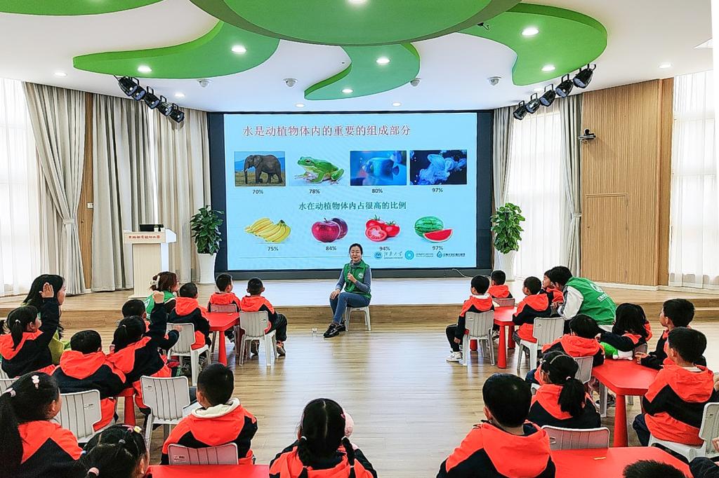 3月21日,在2023年“世界水日”“中国水周”来临之际,江南大学汇思公益团走进无锡市滨湖区天鹅湖实验幼儿园,开展了以“生命之水”为主题的儿童环境知识科普课堂,通过水知识科普、水实验等环节,引导孩子们关注水环境,养成节约用水的好习惯。