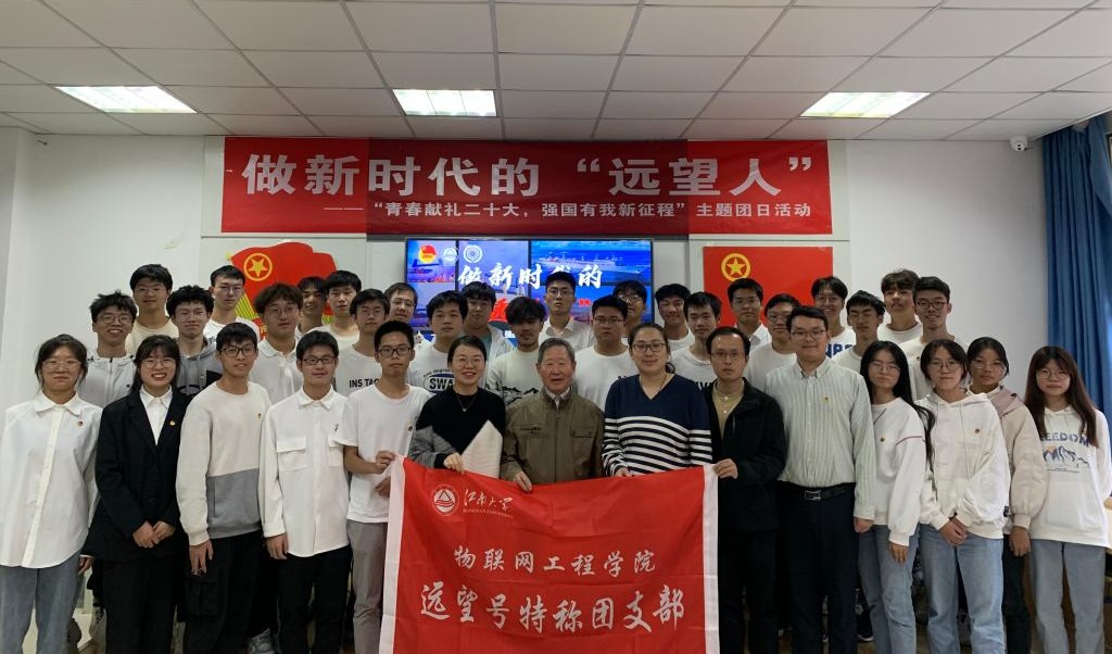 青春献礼二十大,强国有我新征程。10月12日下午,物联网工程学院微电子2103班“远望号”特称团支部以“做新时代的远望人”为主题,在学院C121“青年学习社”开展了主题团日活动。原中国卫星海上测控部副主任兼总工程师刘仁生、物联网工程学院党委副书记孔丽丹、物联网工程学院团委书记洪筱、辅导员沈滔、班主任徐银等参加活动。活动在昂扬的团歌中开始。