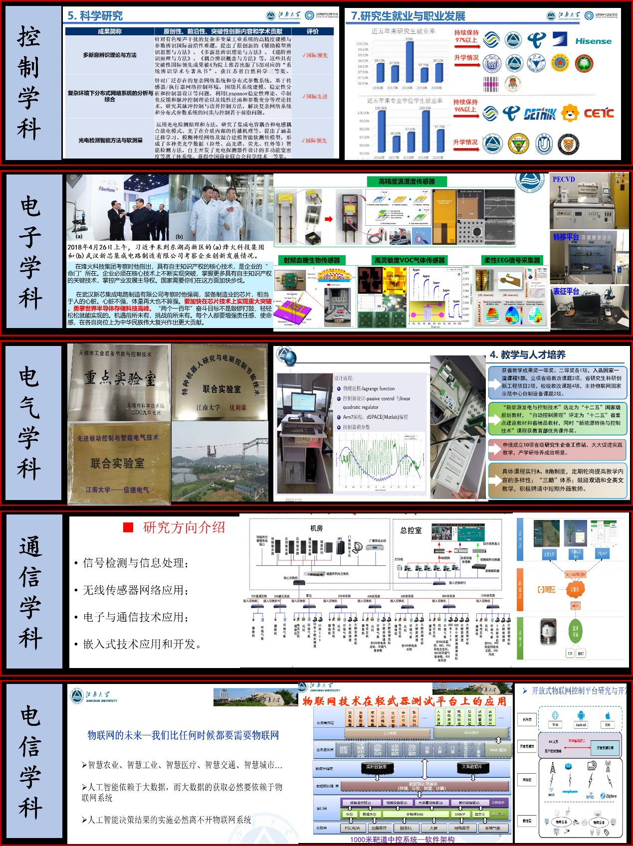 上午10点,控制科学与工程(含控制工程)、电子科学与技术(含集成电路工程)、电气工程、通信工程、新一代电子信息技术等学科以分会场形式开展学科介绍交流。潘丰教授介绍了控制学科的相关教学科研平台,并重点讲解了学科内一批国际、国内领先的代表性科研成果,并对近些年的就业情况进行了分享;顾晓峰教授对学院电子学科的发展和特色研究方向进行了介绍,重点围绕学科对无锡市半导体与集成电路产业的贡献、对国家战略产业的支持进了深入解读,鼓励同学们投身电子产业;沈艳霞教授介绍了电气学科的电机驱动、特种电源、新能源等特色研究方向,并分享了在教学和人才培养方面的成果,表示愿为同学们搭建良好的学术研究和交流平台;李正权教授对通信学科的几个特色研究方向进行了细致讲解,包括信号检测与信号处理、无线传感器网络应用、电子与通信技术应用、嵌入式技术应用和开发等,并就研究生导师队伍和未来就业前景进行了重点介绍;郭亚教授从新一代电子信息技术学科的重要性和紧迫性切入,讲解了学科的发展概况和研究特色,并重点介绍了学科的课程设置和研究方向。