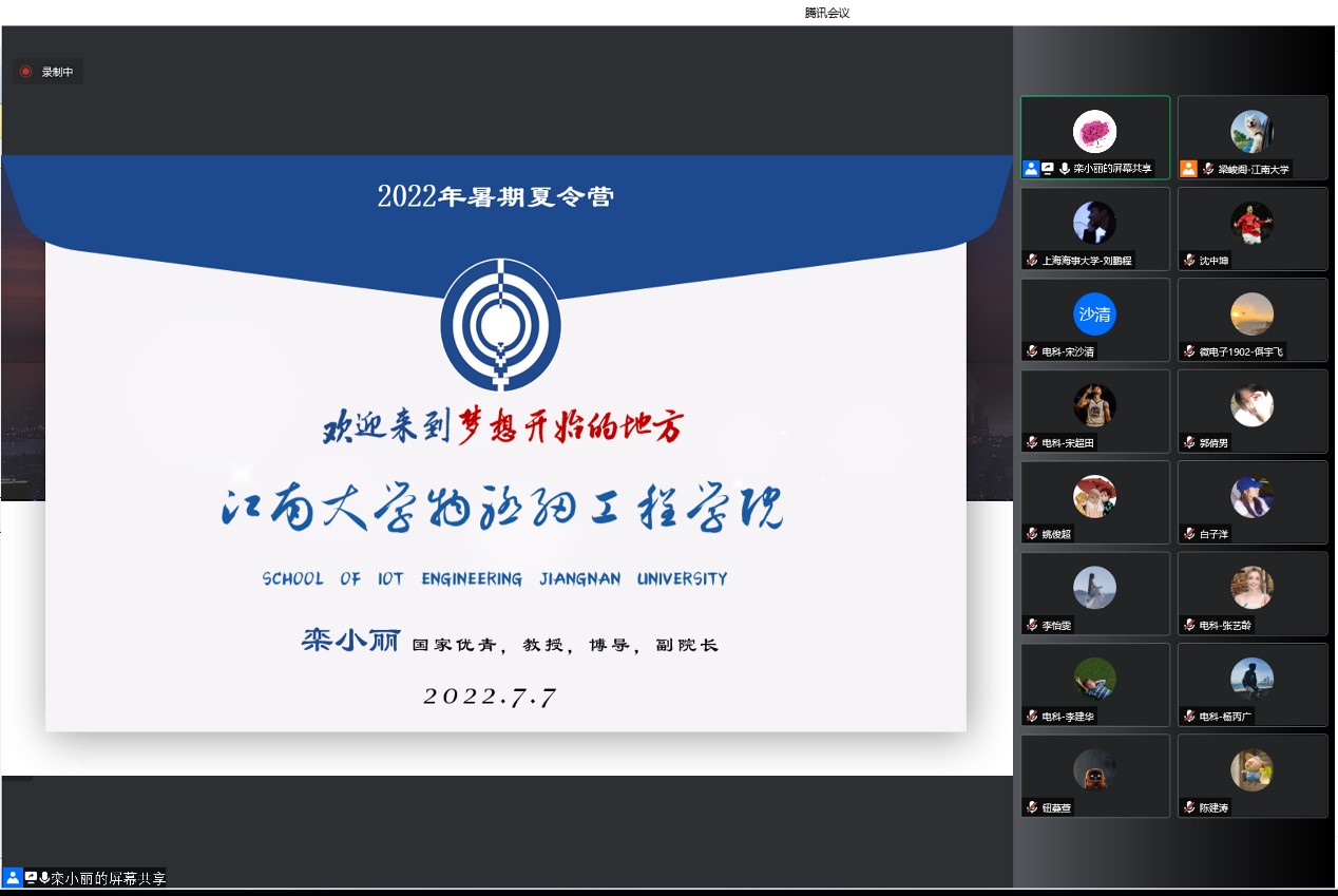 7月7日,江南大学物联网工程学院2022年全国优秀大学生夏令营成功举办。根据学校工作安排及疫情防控要求,此次夏令营全程以线上远程会议方式进行。来自江南大学、厦门大学、中国石油大学、苏州大学等国内知名高校同学踊跃报名,经过学院严格筛选,最终184名优秀学生参加了本届夏令营。