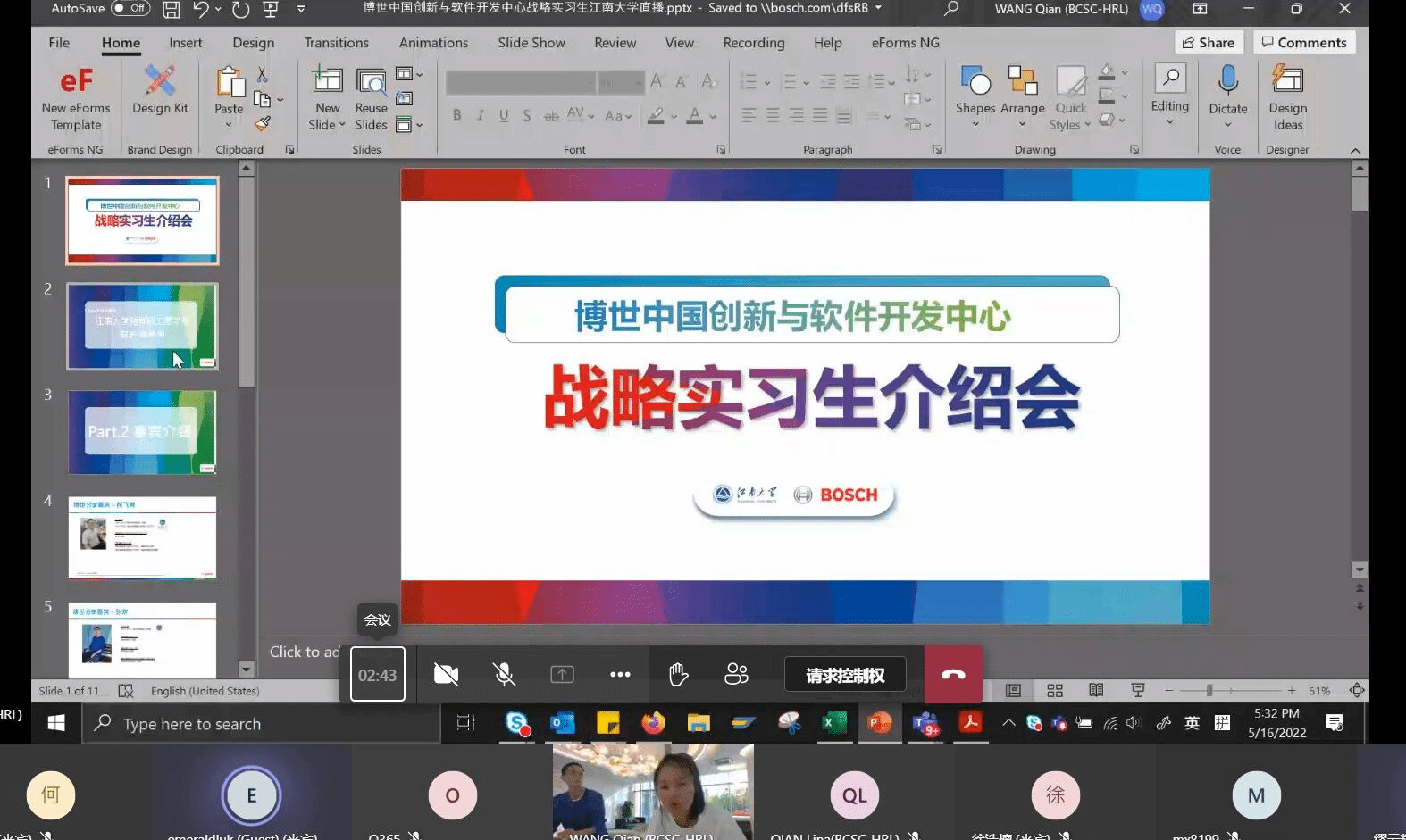 为进一步做好校园封闭管理期间2022届毕业生就业和2023届学生实习工作,物联网工程学院扎实推进“访企拓岗”系列行动,院长谢林柏前往博世中国创新与软件开发中心走访调研,积极推荐毕业生,开拓优质就业渠道和就业岗位。继实地走访带回优质岗位后,5月16日晚,谢林柏通过云直播方式向全校学生推荐博世中国创新与软件开发中心及其提供的战略实习生岗位,活动吸引了来自物联网工程学院、人工智能与计算机学院、机械工程学院等200余位同学的积极参与。