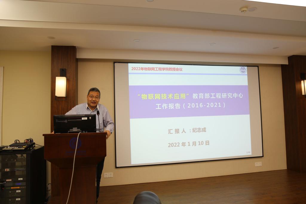 物联网技术应用教育部工程研究中心主任纪志成教授作中心评估情况汇报