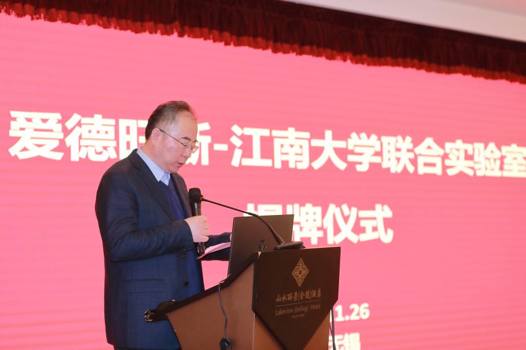 2021年11月26日,爱德旺斯-江南大学联合实验室揭牌仪式在无锡山水丽景酒店隆重举行。无锡市滨湖区科技局副局长陈莹赟、无锡市科学技术协会二级调研员刘邦盛、无锡爱德旺斯科技有限公司董事长曹余庆,江南大学校长助理张光生、产业技术研究院院长刘龙,物联网工程学院院长谢林柏、副院长樊启高,无锡市自动化学会理事长杨慧中等出席活动。揭牌仪式由樊启高主持。