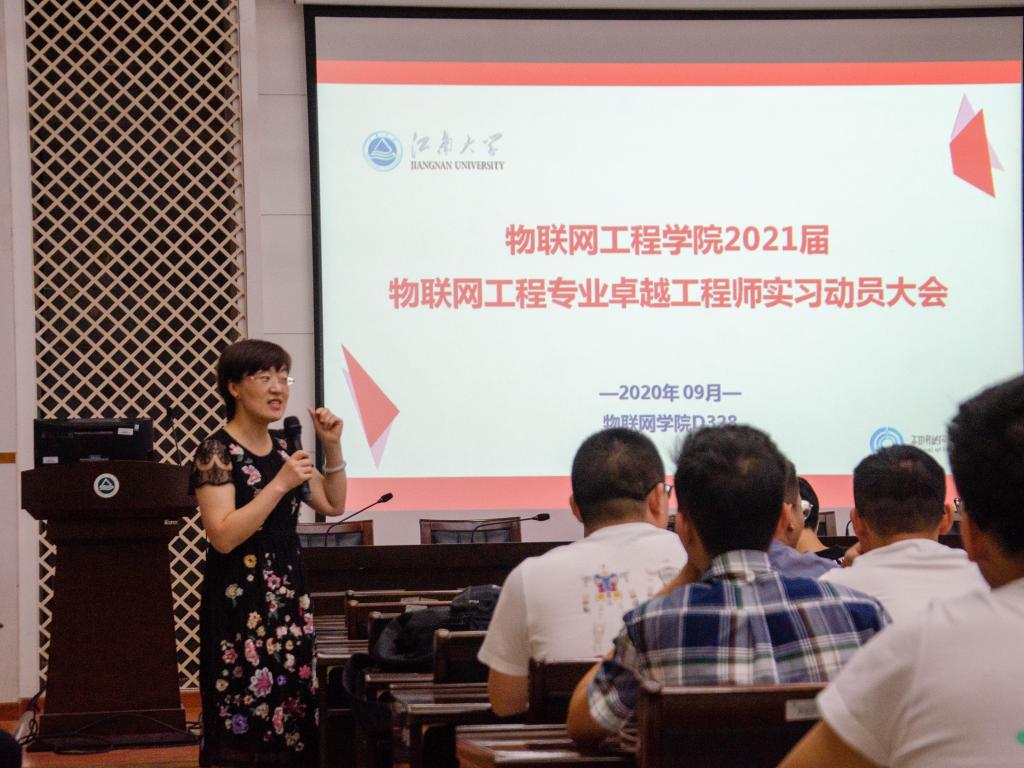 9月14日上午,物联网工程学院“卓越工程师教育培养计划”(以下简称“卓工计划”)实习动员大会在学院D328举行。信息技术系主任秦宁宁教授、专业责任教授朱启兵教授、吉训生教授及2017级物联网工程专业全体同学出席动员大会。会议由王志顺主持。
