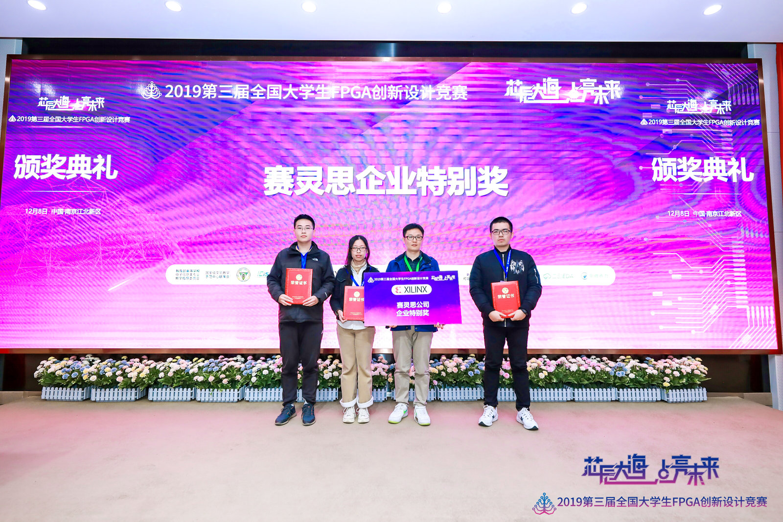 由我校物联网工程学院柴志雷老师指导的参赛队伍代表江南大学参加了该赛事,参赛队员由物联网工程学院研究生张新伟、李康、郁龚健、刘家航组成。经过激烈竞争,参赛作品“基于FPGA的类脑计算平台”斩获特等奖,并获得全球最大的FPGA提供商Xilinx的企业特别奖。