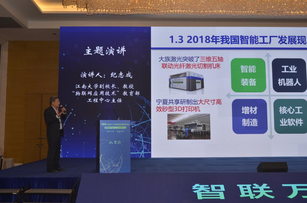 会上,针对我国智能工厂的发展现状和存在问题,纪志成作了《智能工厂共性技术与新模式应用》的主旨演讲,重点阐述了智能工厂实施的6大关键技术,同时分享了研究团队将该项技术分别应用于离散型和流程型制造企业的应用新模式和典型案例,并向与会代表介绍了无锡市人民政府与江南大学“十三五”市校合作共建智能制造中心的进展情况,为参会企业和行业人才开拓了发展智能制造的新思路。