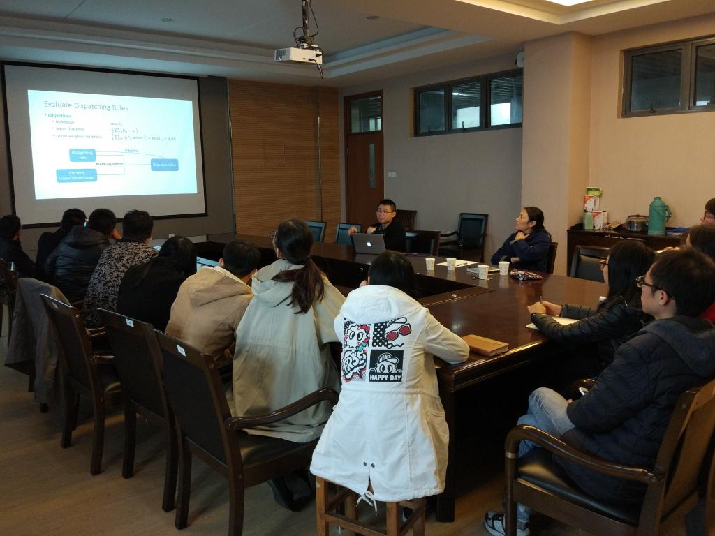 21号下午,YiMEI博士还以“Automatic Design of Dispatching Rules for Dynamic Job Shop Scheduling with Genetic Programming”为题,为师生作了有关遗传规划算法用于车间调度的专题学术报告。
