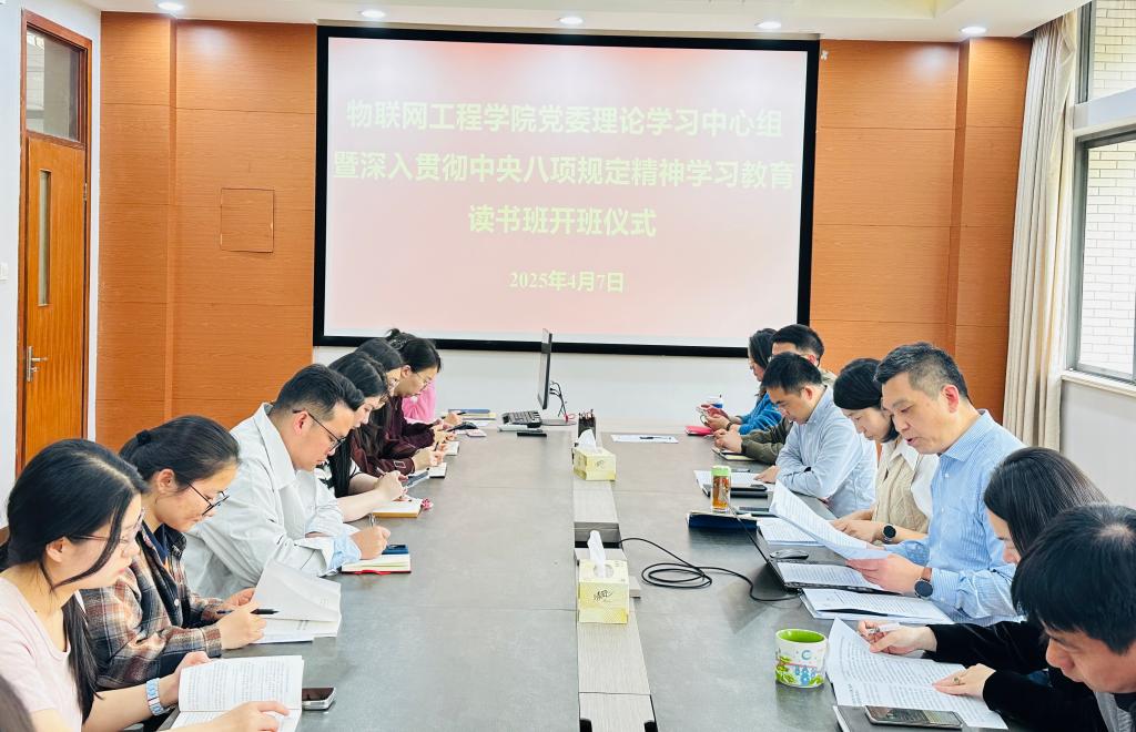 4月7日下午,物联网工程学院党委理论学习中心组暨深入贯彻中央八项规定精神学习教育读书班开班仪式在学院D206举行。学院党委理论学习中心组成员、师生党支部书记参加开班仪式并集中学习。学院党委书记张华主持开班仪式。