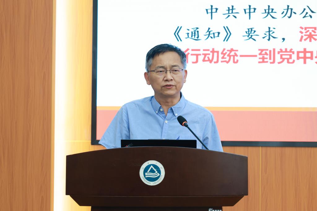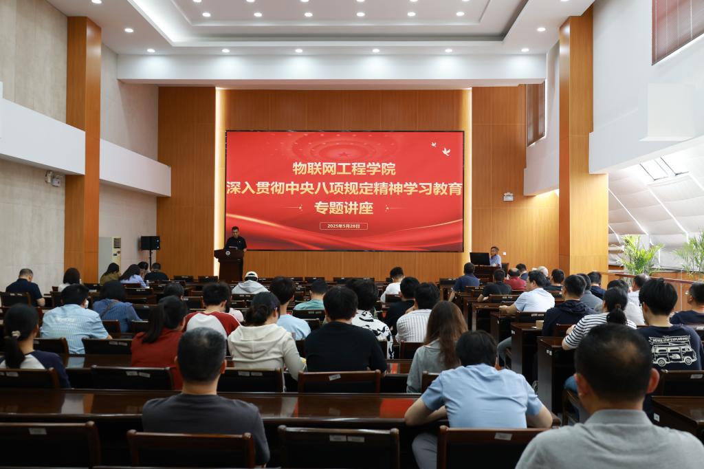 5月28日下午,物联网工程学院深入贯彻中央八项规定精神学习教育专题辅导报告会在学院D328召开。我校马克思主义学院徐玉生教授受邀作专题辅导报告。学院所有教师党员、学生党员代表参加本次报告会。学院党委书记张华主持并讲话。
