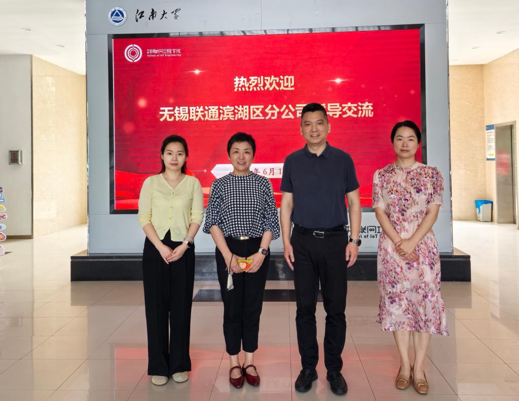 6月13日,无锡联通滨湖分公司总经理朱丽芳一行来物联网工程学院开展交流访问。
