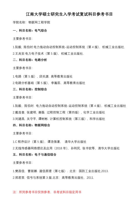 2023年江南大学硕士研究生入学考试复试科目参考书目