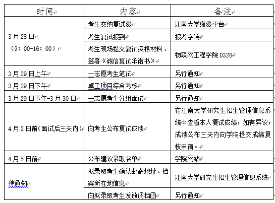 江南大学物联网工程学院2025年硕士研究生一志愿考生复试日程安排
