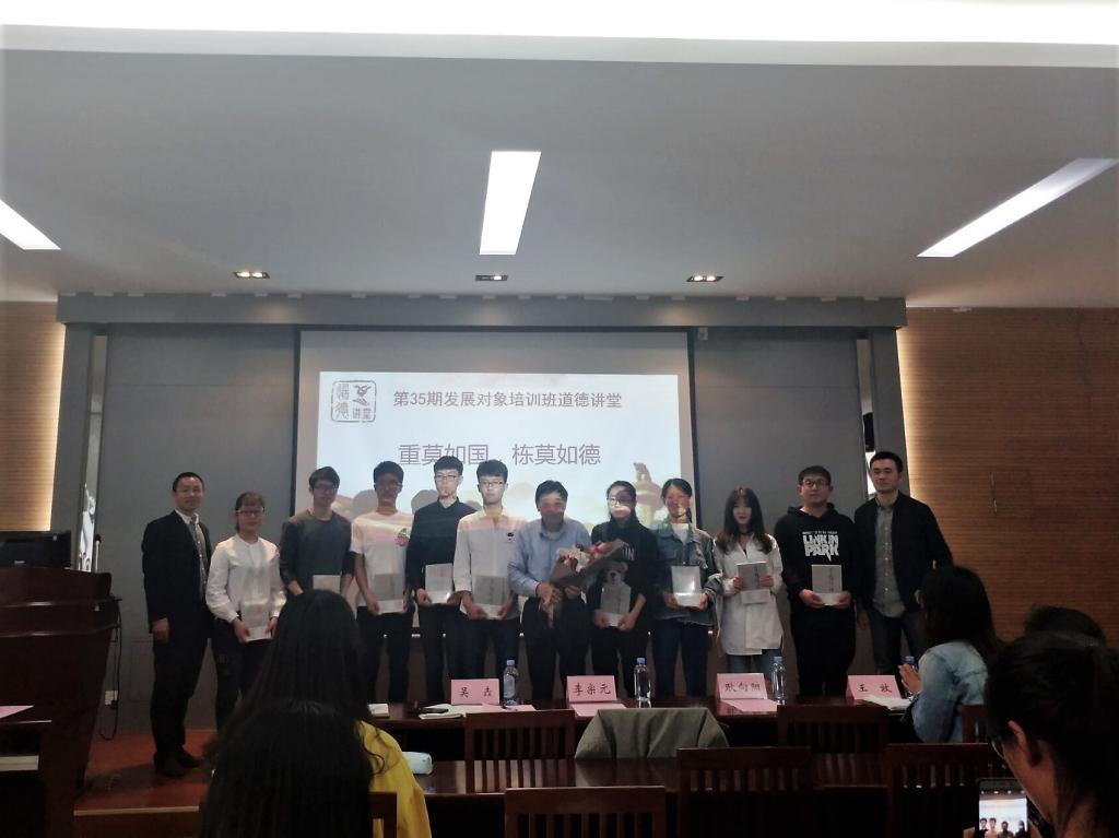 4月20下午,物联网工程学院第35期学生发展对象培训班举办了以“重莫如国,栋莫如德”为主题的道德讲堂。出席本次活动的嘉宾有原无锡轻工大学党委副书记李宗元,物联网工程学院党委副书记、副院长耿向阳,物联网工程学院分团委书记吴垚,辅导员赵丽敏,数字媒体学院辅导员王牧以及培训班全体同学。