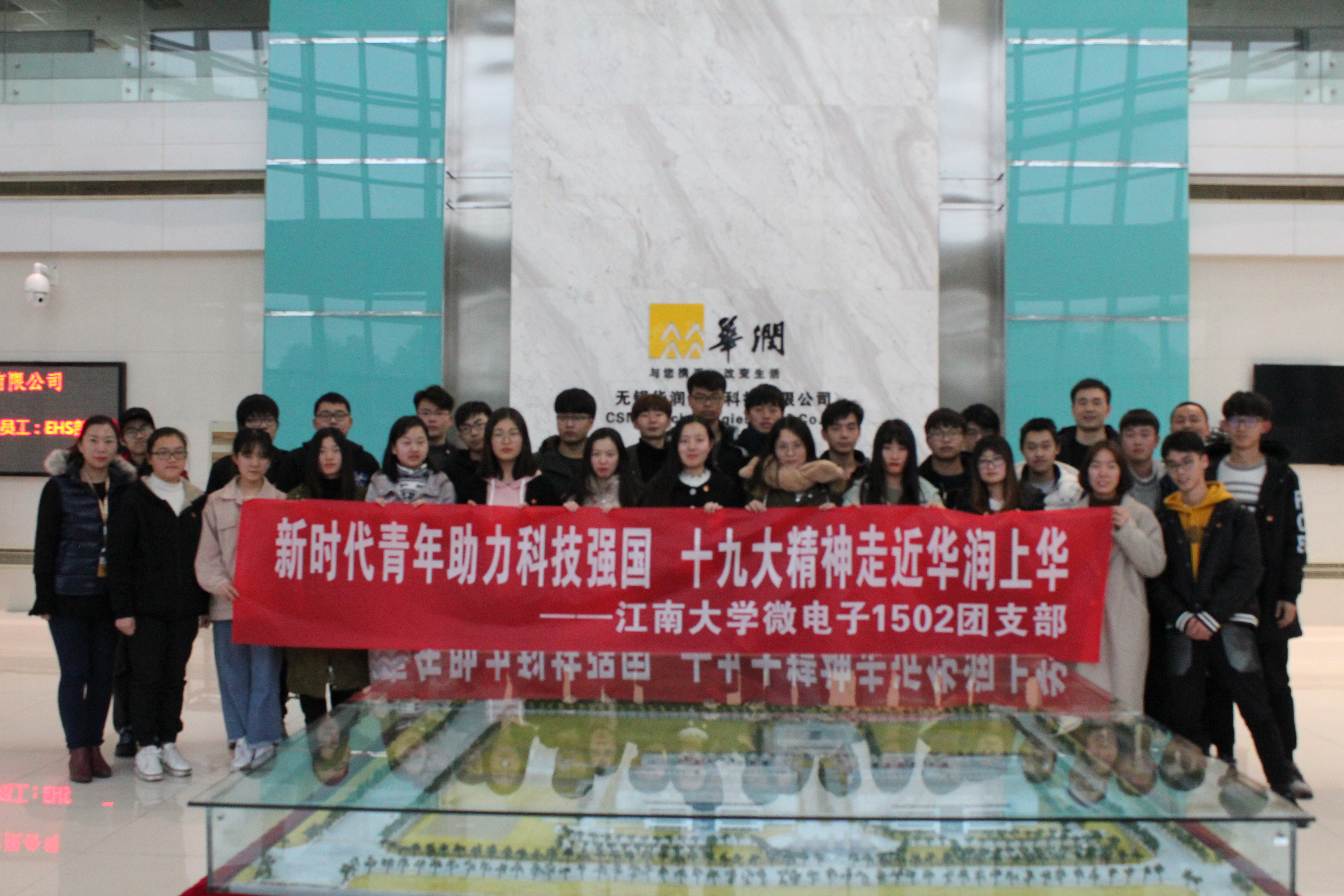 2017年11月15日,物联网工程学院微电子1502团支部举办了“走进华润微电子,学习党的十九大精神”的团日活动。物联网工程学院党委副书记、副院长耿向阳,分团委书记吴垚、华润上华制造中心党委副书记,人力资源总监高鹏飞,华润上华制造中心二厂党支部书记华强,人力资源部相关人员以及微电子1502班的全体成员参与了本次活动。本次活动是以学习和宣传党的十九大精神为背景开展的,活动的主题是“新时代青年助力科技强国,党的十九大精神走进华润上华科技有限公司”,同时,本次活动也是物联网工程学院党的十九大精神学习宣传系列活动之一。
