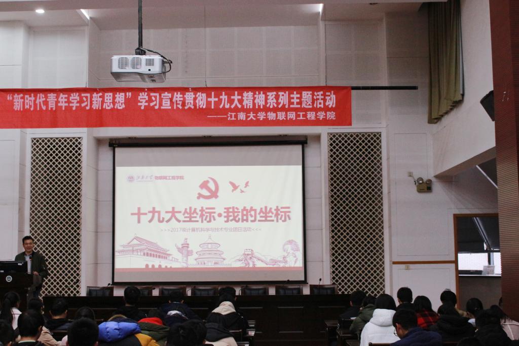 12月7日下午三点半,物联网工程学院2017级计算机专业团支部学习党的十九大精神主题团日活动在我院D328教室开展,2017级计算机专业的同学参加了此次活动。我院分团委副书记吴垚老师应邀出席活动并为同学们演讲。