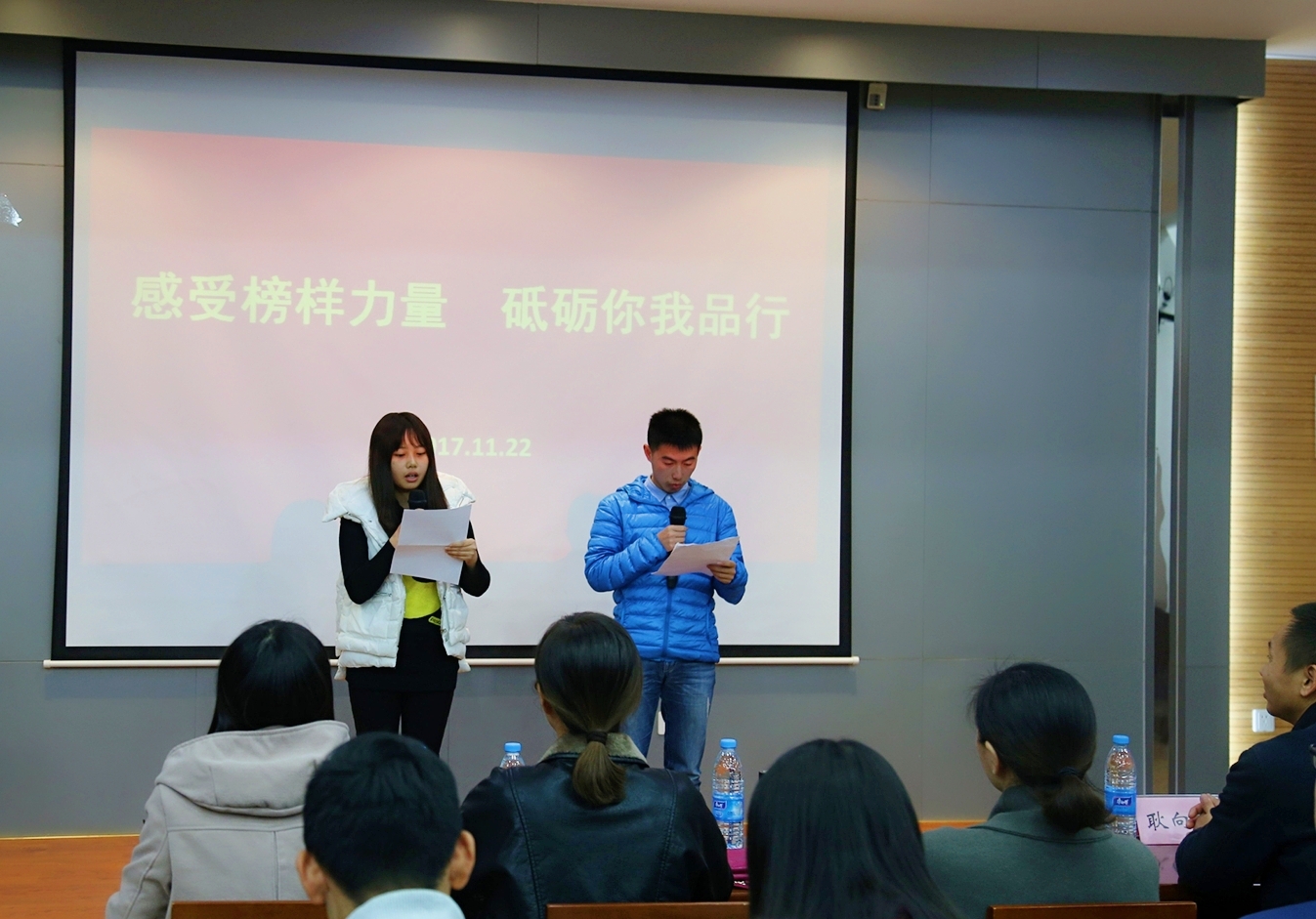 11月22日下午,物联网工程学院第34期发展对象培训班之“感受榜样力量 砥砺你我品行”道德大讲堂在学院B310举行。物联网学院党委书记程捷音老师,物联网学院党委副书记、副院长耿向阳老师,辅导员赵丽敏老师出席活动,第34期分党校培训学员齐聚一堂,共同感受榜样力量。