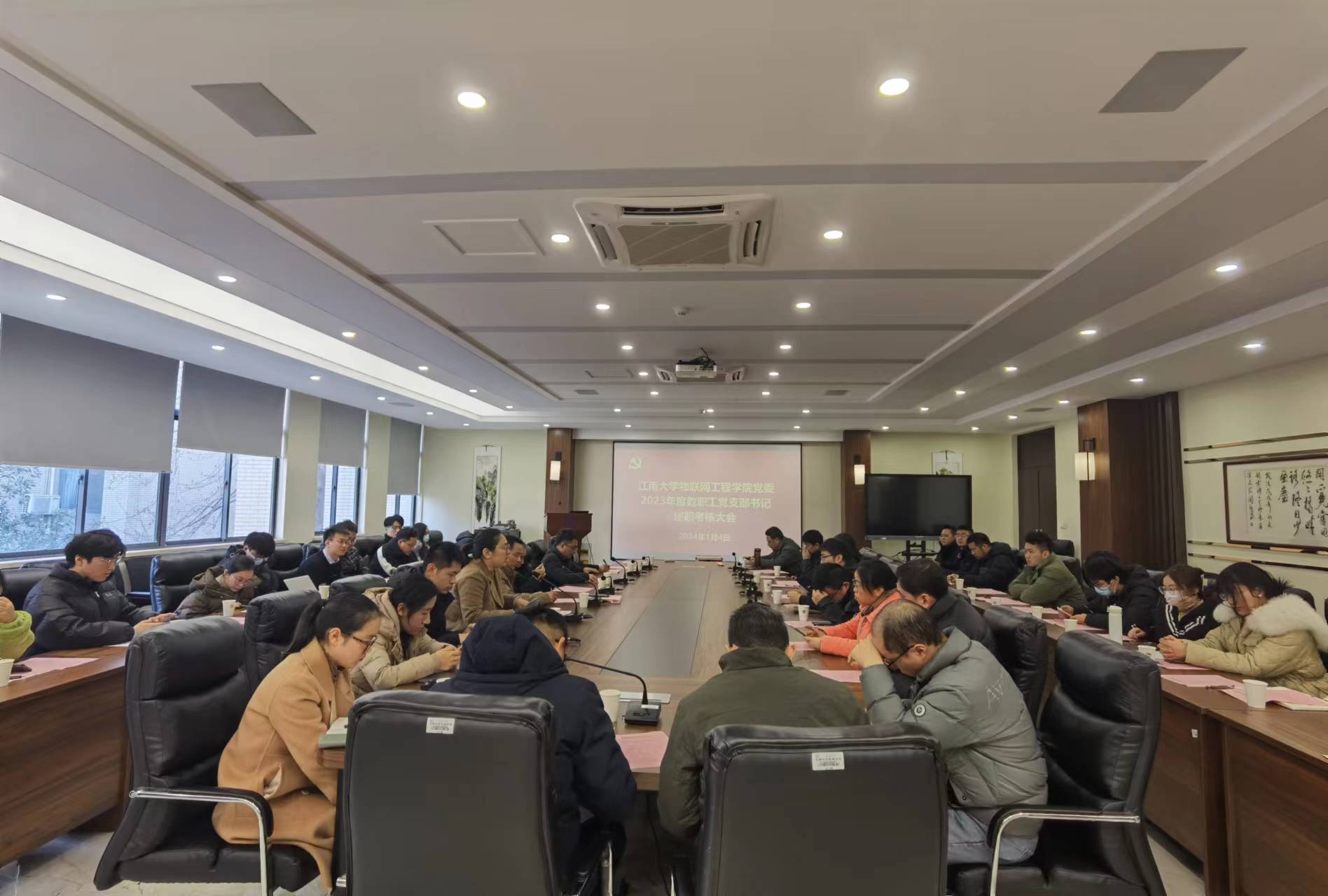 2024年1月4日,物联网工程学院组织开展2023年度教职工及师生混合党支部、学生党支部书记抓党建述职评议工作,全体党委委员、党支部书记、系主任、支委及师生党员代表40余人参加了会议。会议分别由院党委副书记、副院长孔丽丹,陈珊同学主持。