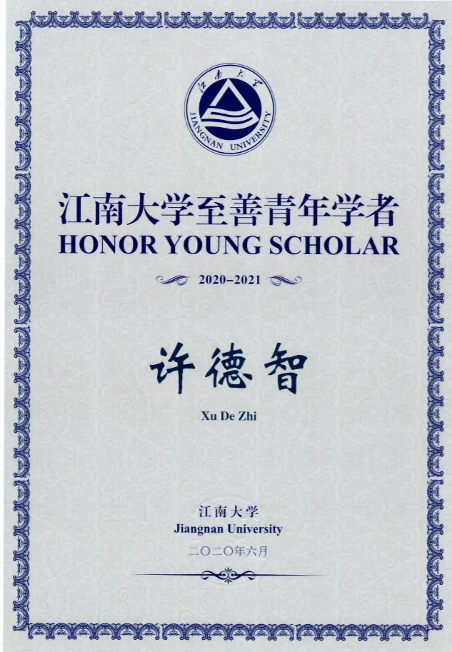 物联网工程学院许德智老师获评江南大学2020-2021年度“至善青年学者”称号。