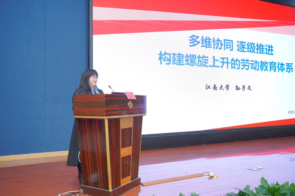 构建德智体美劳全面培养的教育体系,确立新时代大学劳动教育的基本原则、目标内容、实施路径和保障机制,具有鲜明的时代价值。孙子文深刻认识到劳动教育对于培养学生正确的劳动价值观和良好的劳动品质的重要意义,牵头组建了由50多个专业近60余名教师组成的新时代劳动教育联合教研室,开展集体备课、教学研讨、教学培训等活动,参编劳动教育教材,并在全省会议上代表江南大学作交流发言。连续多年承担《新时代劳动教育》课程教学任务;作为第一完成人主持完成江苏省高等教育学会教改项目《“多维协同 逐级递进”高校劳动教育三联动模式创新的研究与实践》。作为教务处副处长,她在学校主导开展“德润全员、以劳铸魂”的江南特色劳动教育主题月育人实践,并获江苏省高等学校劳动教育优秀实践项目特等奖。