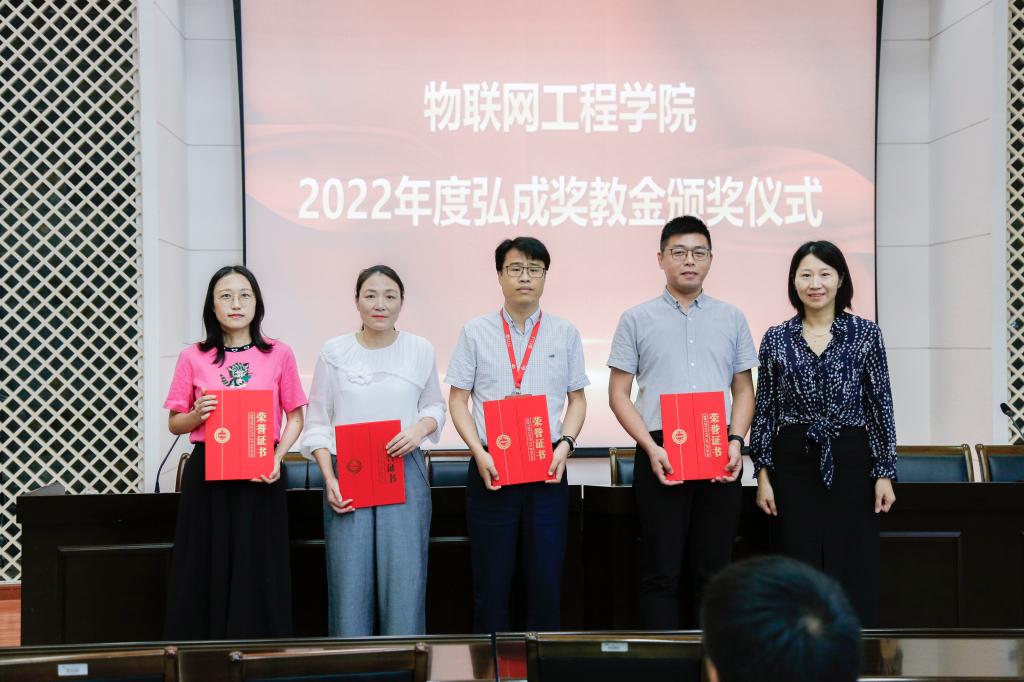 弘成奖教金是由弘成科技发展有限公司设立,旨在奖励为学院发展建设做出重要贡献或取得突破性、标志性成果的个人和集体,分别设有党建创新奖、科技突破奖、教育教学奖、管理服务奖、校园文体奖等奖项。2022年度“弘成奖教金”共设一等奖4项、二等奖8项、三等奖12项,其中,一等奖分别授予大学生创新实践基地党支部(入选全国党建样板支部)、“物联网技术应用”教育部工程研究中心(通过评估并获良好等级)、许德智老师(荣获国家优秀青年科学基金)和院乒乓球队(荣获江南大学“院长杯”乒乓球赛冠军)。