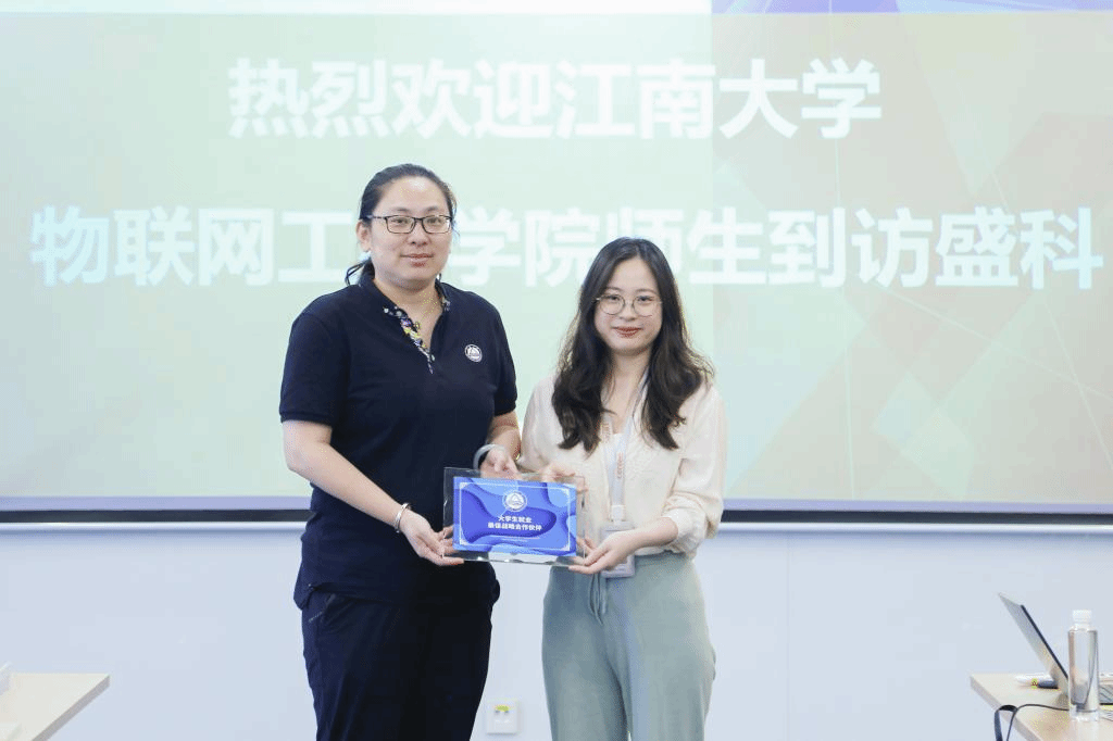 7月27日下午,物联网工程学院党委副书记、副院长孔丽丹,实验中心工程师张新,电子工程系系主任于平平、副主任张博,电子工程系副教授张曙斌,专职辅导员屈跃宽、曾磊、谢幸福以及11名研究生代表前往苏州盛科通信股份有限公司进行走访交流。苏州盛科通信股份有限公司技术专家夏杰、主任工程师徐子轩、人事经理王颖以及人事专员白鹭出席活动。