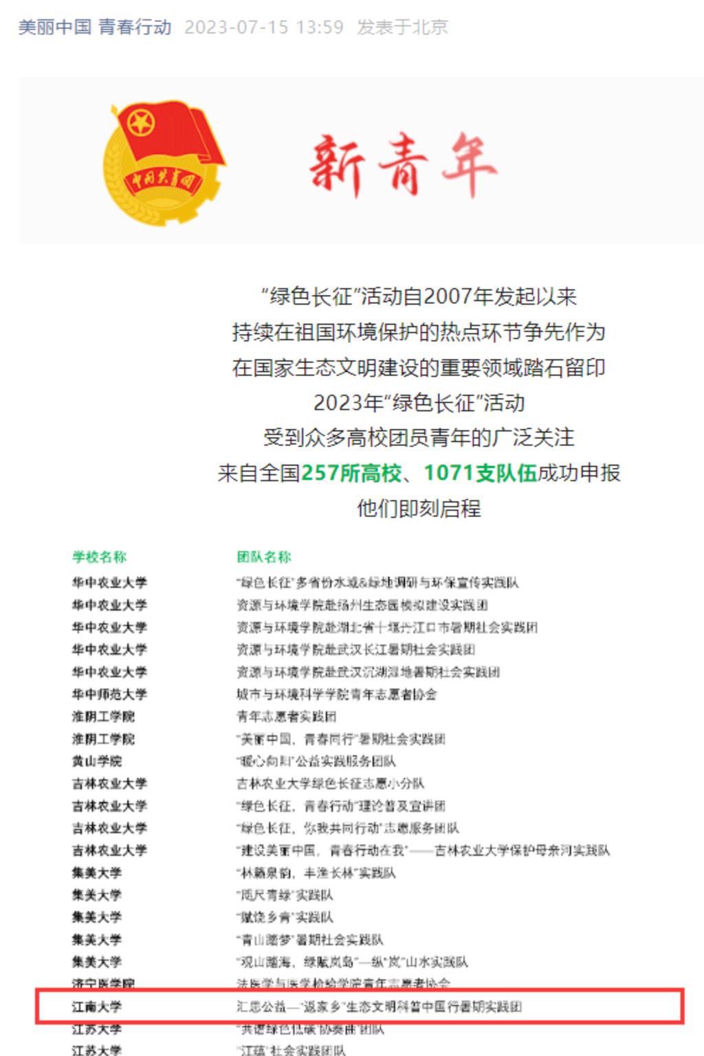 “美丽中国·青春行动”2023年青少年绿色长征科考实践活动入选名单