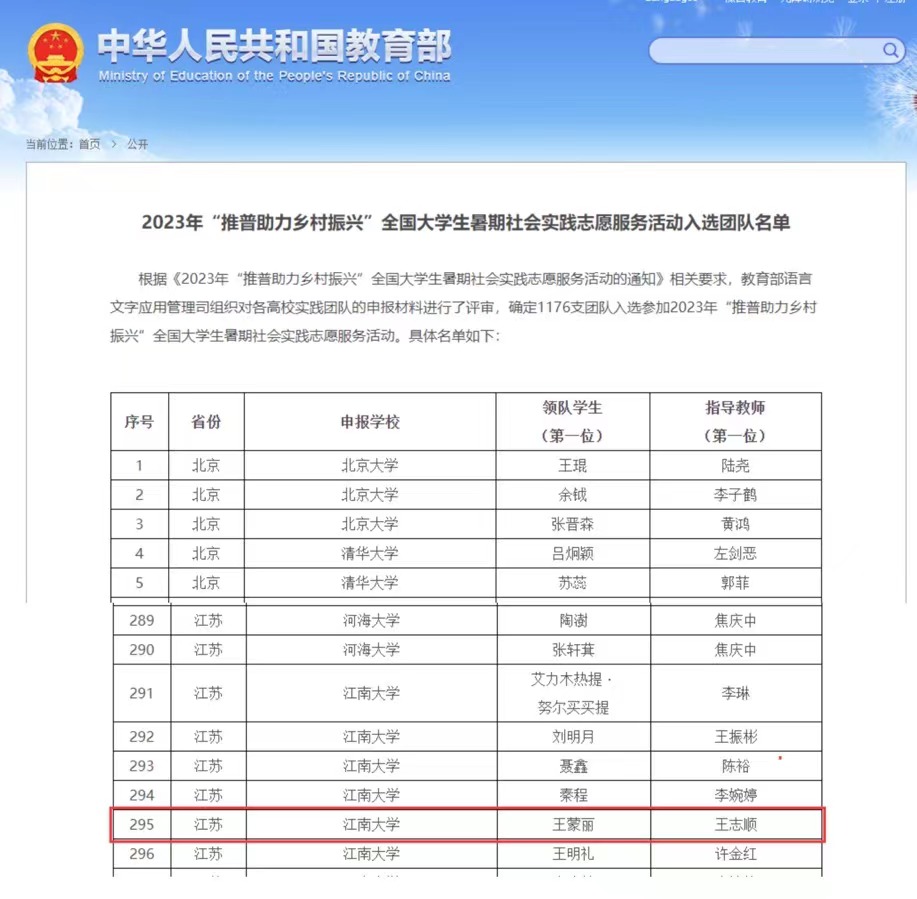 “推普助力乡村振兴”全国大学生暑期社会实践志愿服务活动入选名单