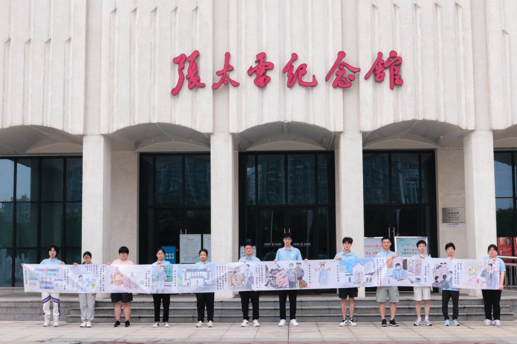 十米长卷由三部分组成,分别以瞿秋白、张太雷、恽代英三个纪念馆作为开篇线索,依次复刻了瞿秋白英勇就义、张太雷主持教导团誓师起义、恽代英创办利群书社等历史事件,同时呈现了“常州三杰”的革命箴言、诗文遗作。流畅的线条、生动的表情、雄浑的笔墨,展示了先辈们高尚的革命情操和崇高的人格情怀。画笔轻轻,却描绘出了历史的厚重感和凝练感,更流露出知党、敬党、爱党、诵党的真实情感。活动当天,实践团成员在“常州三杰”纪念馆完成了作品的最后上色,用十米画卷为“七一”献上了一份别出心裁的礼物,以特有的方式与三位百年前的“95后”展开一场跨越时空的信仰对话,敬先烈、忆初心、担使命。