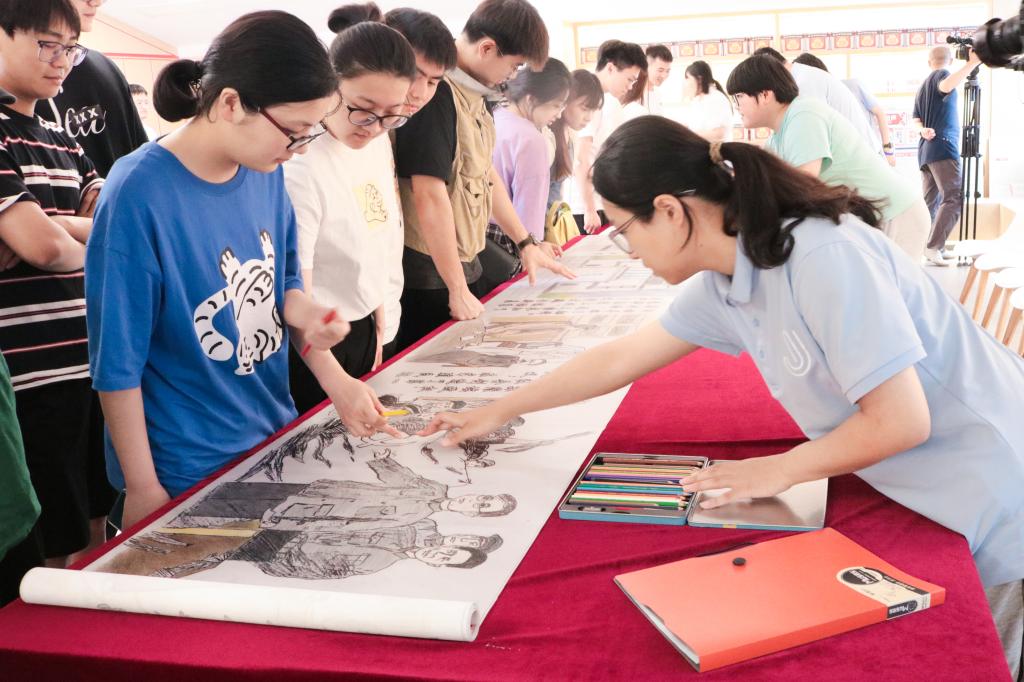 志愿团绘制十米红色长卷
