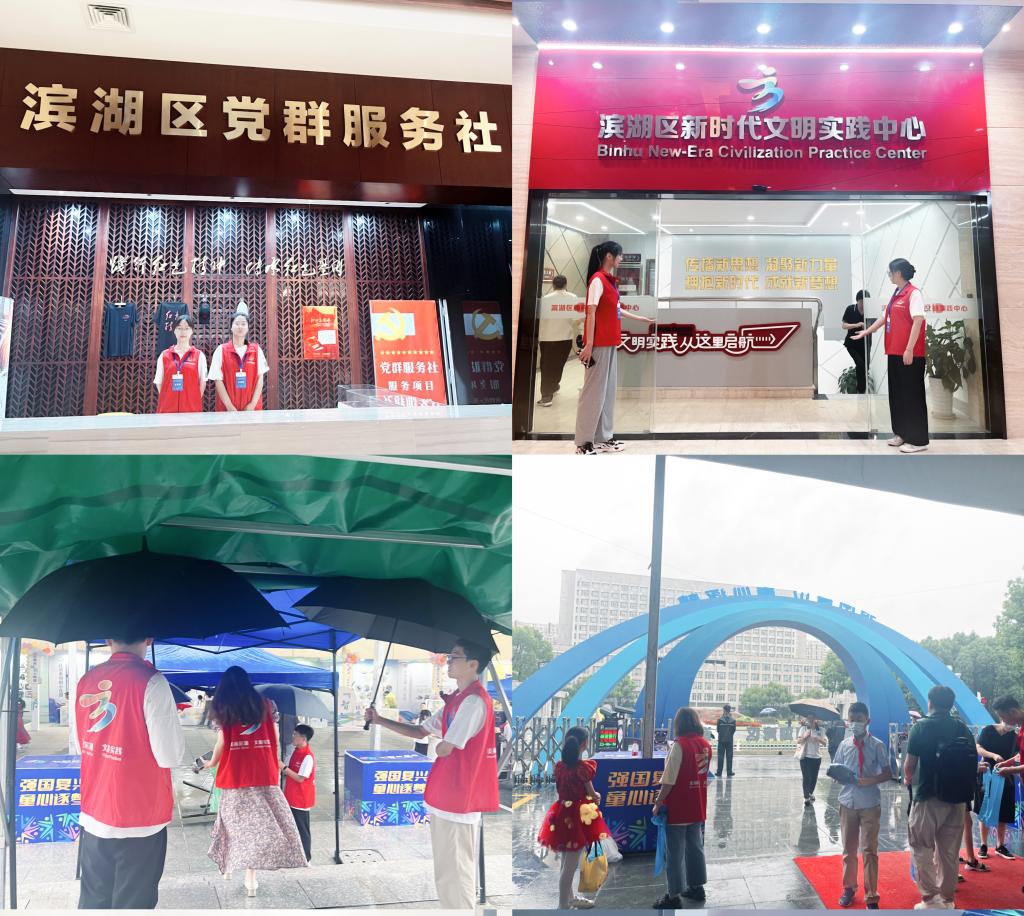 当日清晨,志愿者先锋队便已积极投入到迎宾、介绍、指引和秩序维持等一线岗位,狂风骤雨抵挡不住志愿者的服务热情,恶劣天气影响不了年轻人的满腔干劲。他们以饱满的热情、友善的态度、务实的精神,为到场的领导嘉宾、学生家长提供了体贴周到的服务。7:00—12:00连续五小时的岗位坚守保障了活动各环节顺利进行,这抹“志愿红”在江南暴雨中格外耀眼和温暖,彰显了红色青春正能量,得到活动各方的大力肯定。志愿服务伴随着活动结束圆满完成,无锡滨湖党建馆吴臻翔馆长向志愿者们赠送书籍,感谢志愿者们的辛勤付出,并激励大家在新时代、新征程中激扬青春、砥砺前行。