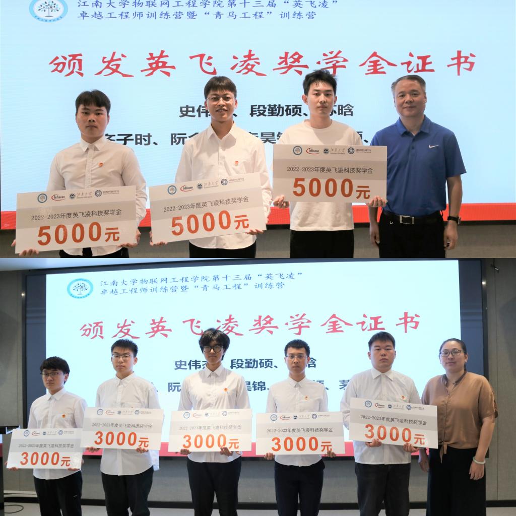 范永新、孔丽丹分别宣读2022年度英飞凌科技奖学金研究生、本科生获奖名单并为其颁奖。物联网2004班阮金哲作为获奖学生代表发言,他汇报了自己在专业学习、学科竞赛、科研创新等方面的经历及取得的成果,鼓励全体营员在提升自我、科研创新的道路上砥砺前行。