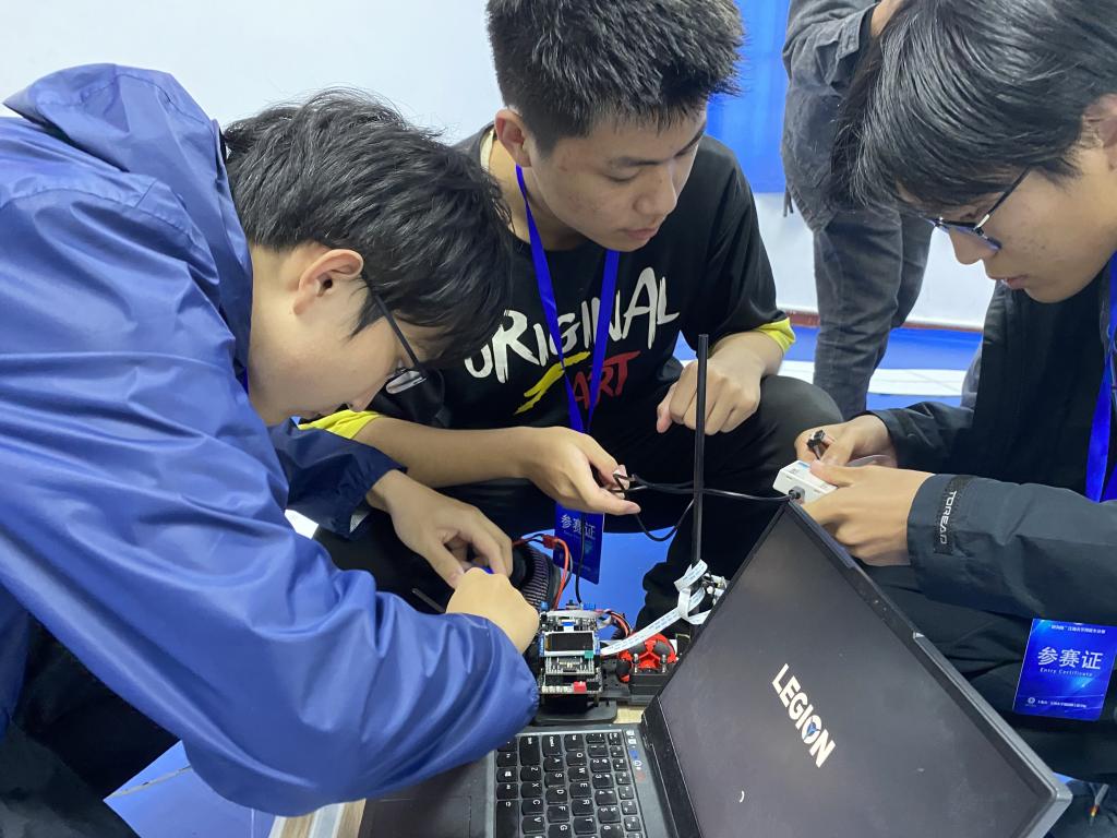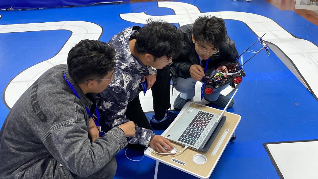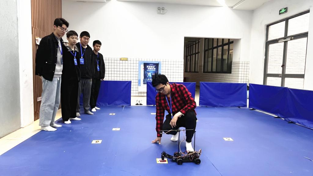 经过4个多月的集中培训和单独指导,最终来自物联网工程学院、机械工程学院、人工智能与计算机学院等学院的60余名学生,12支队伍进入决赛。本届大赛决赛的参赛组别包括负压电磁组、摄像头组、电能接力组、独轮车组、智能视觉组、急速越野组、单车越野组。负压电磁组打破常规思路,在车模下面安装负压风扇,降低车身重心,使车模具有更加强大的贴地运行能力的同时提高了速度上限;摄像头组则是将四轮车模改成三轮车模,在不失稳定性的同时具有更高的观赏效果;电能接力组则融合了去年的无线充电组和多车编队组的精髓,模拟真实救援场景,供电车辆自主定位停电车辆,对其进行供电救援;独轮车组的特点在于全新的独轮车模,复杂的平衡控制算法以及极高自由度的赛道行驶方案,为参赛队员提供了更大的发挥空间。