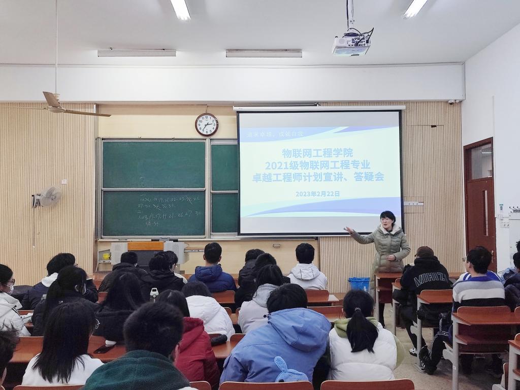 2月22日下午14点,物联网工程学院2021级物联网工程专业“卓越工程师教育培养计划”宣讲会在1A114举办,信息技术系吉训生教授、秦宁宁教授出席会议并主讲。宣讲会由辅导员沈滔主持。