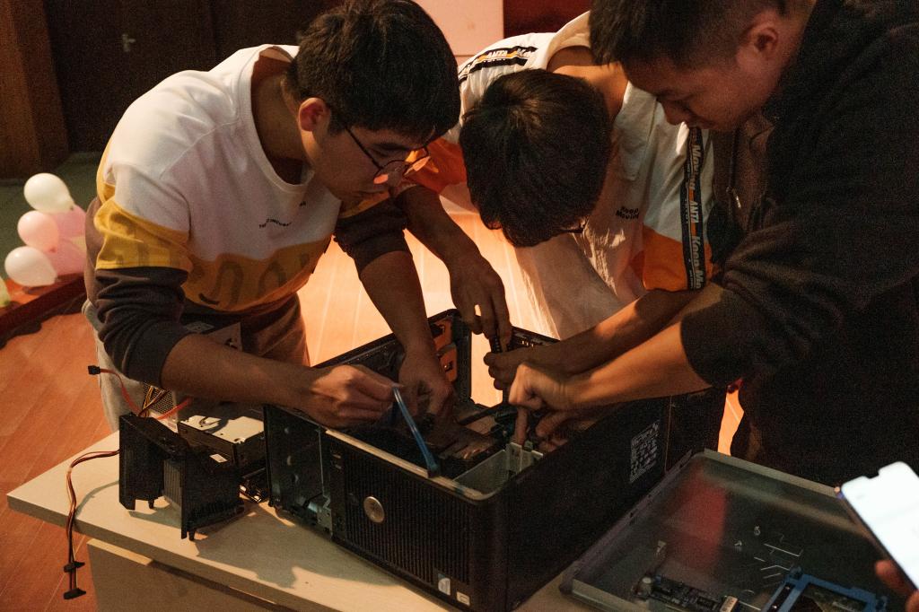 自今年9月开赛以来,全校共有155支队伍400余名同学报名参赛,经历了笔试、集中培训、初赛等环节的层层筛选,有八支队伍脱颖而出,进入决赛环节的激烈角逐。决赛分为必答题、抢答题和拆装机三个环节。必答题环节题目的内容囊括了程序设计、计算机基础以及其他各种计算机软硬件的知识,参赛队伍不假思索、准确无误的答案获得了现场观众的一致喝彩。抢答题环节是一场知识储备量与速度的较量,本环节以抢答题为主,八支队伍对抢答题进行作答赢得加分。拆装机环节是决赛的高潮,也是最后速度的较量,螺丝刀在参赛队伍的手中飞速运转,令人眼花缭乱的拆装动作激起了观众热烈的掌声。经过三个环节的激烈比拼,最终“江大图灵队”“你说的都队”“道理说的都队”分别获得本届大赛的一、二、三等奖。