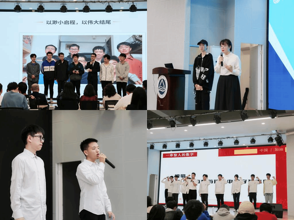 随后,参赛团队依次上台展示。经过前期自主申报、学院评审核定,本次答辩会共有10支团队入围,涵盖了“科研团队类”“竞赛俱乐部类”“学生组织类”“社会实践类”“宿舍类”等多种组织类型。参赛团队通过模型展示、视频展播、情景剧展演等多元形式讲述团队故事,形式新颖,内容深刻,其中既有勇当“逆行者”、默默守护的奉献故事,又有专攻“卡脖子”关键技术、日夜兼程的奋斗战绩;既有甘为“夜航星”、不忘初心奔走劳碌的服务精神,又有敢创新、有闯劲,冯虚御风扶摇上的科创事迹……值得一提的是,评委老师与参赛集体的互动也夺人眼球,快问快答、集体接龙、专业点评等答辩形式一度将现场气氛烘托至高潮。