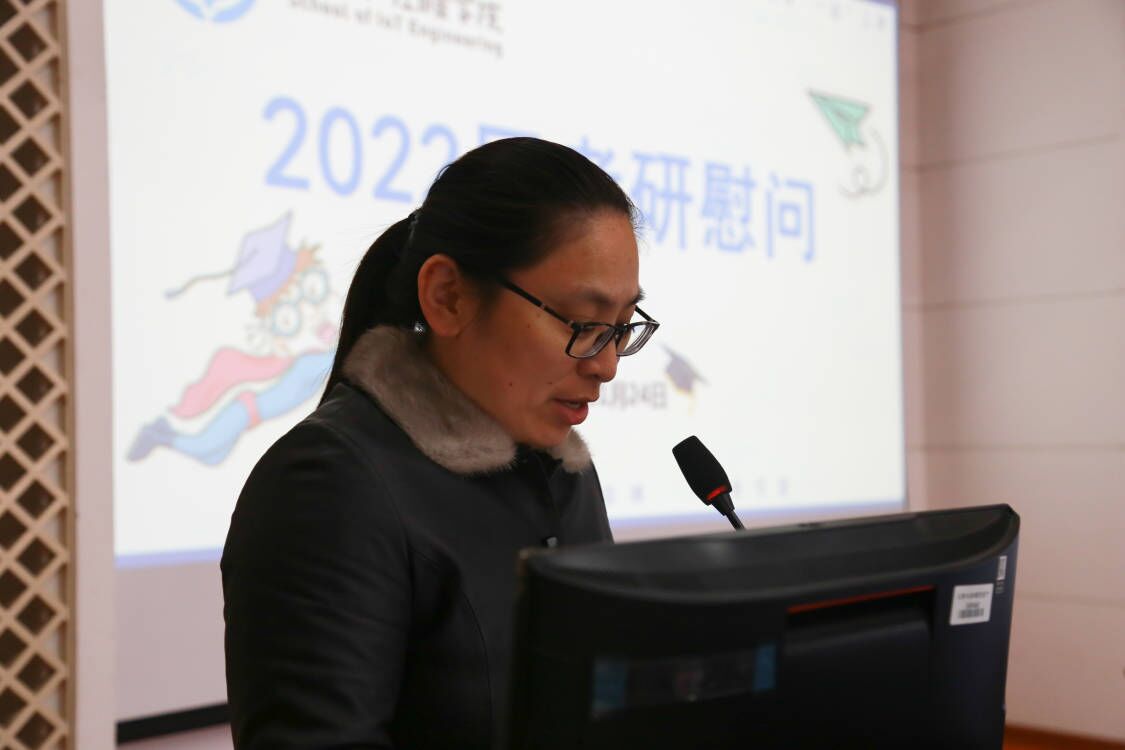 为帮助考研学子在紧张备考的同时缓解压力,将“我为师生办实事”落细落地,11月24日下午,物联网工程学院2022届考研慰问解压活动在学院D328举行。学院党委书记程捷音、院长谢林柏、党委副书记孔丽丹,毕业班辅导员、班主任代表,及130余名考研学子共同参加活动。活动由孔丽丹主持。