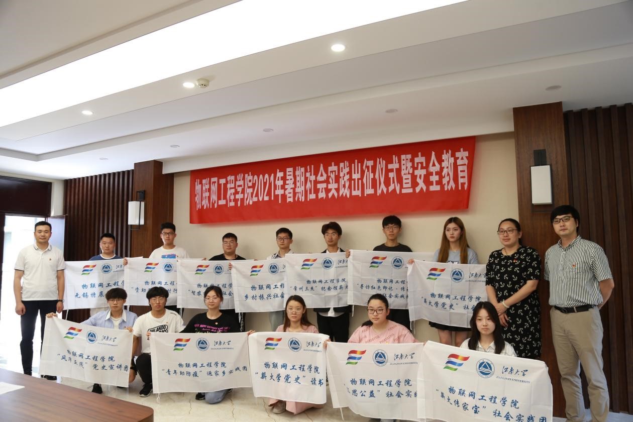 6月30日下午,物联网工程学院2021年暑期社会实践出征仪式暨安全教育活动在B222举行。学院党委副书记、副院长孔丽丹,团委书记吴垚,各年级团支部书记、2020年暑期社会实践优秀团队代表、2021年暑期社会实践立项团队代表等参加活动。学院全体辅导员、实践团队员、入党积极分子等线上收看直播。活动由学院团委副书记杨兵主持。