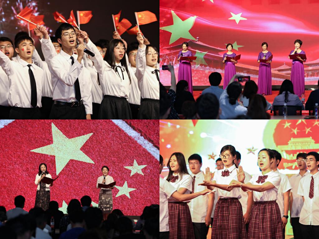 《礼赞新时代》篇通过对国家发展、时代进步背后奋斗故事的歌颂,表达青年学生对祖国最真挚的热爱。原创话剧《瞿秋白》讲述中国共产党早期领导人瞿秋白在未来记者的带领下领略当今中国强大与辉煌的故事,带领观众重温红船精神、抗战精神和伟大抗疫精神;合唱《我爱你中国》、朗诵《为祖国而歌》则从青年学生视角抒发中华儿女对新时代中国飞速发展的感慨和对祖国母亲的无限依恋。
