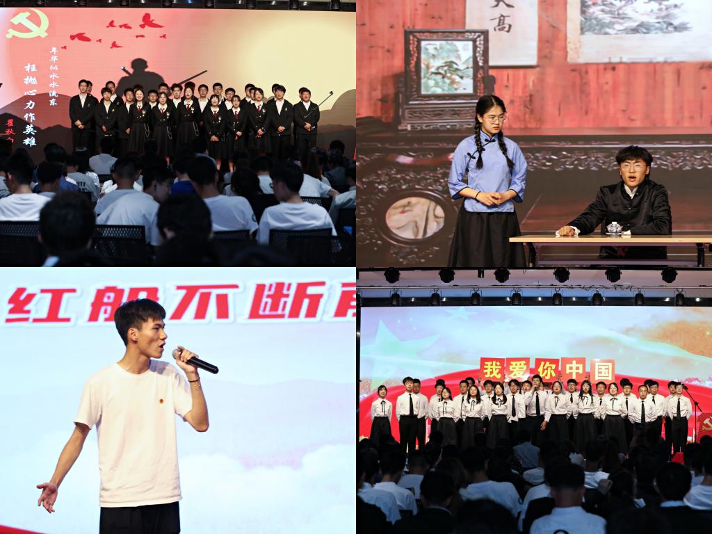 《启航新时代》篇阐释了“小我融入大我”的时代内涵,展现物联人勇做走在时代前列的奋进者、开拓者、奉献者,在盛世中肩负重任、与新时代同向同行的坚定信念。话剧《青春之歌》,通过讲述新时代大学生进藏支教帮助贫困的藏族学生继续学习的故事,歌颂建党100周年来我国在民族融合和全面脱贫方面取得的可喜成就;合唱《星辰大海》、朗诵《薪火相传》,以物联学子在党史学习教育中汲取的磅礴力量唱响青春强音,表达物联学子让红色基因、革命薪火代代传承的决心。