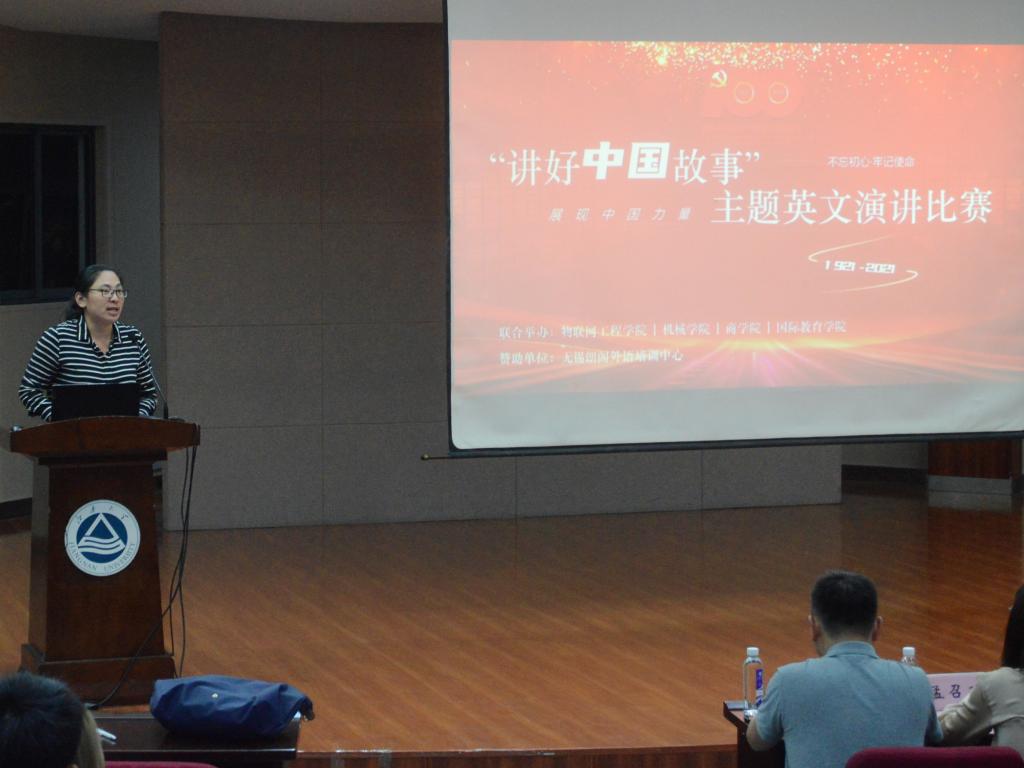 近日,为庆祝中国共产党百年华诞,歌颂伟大祖国和人民所展现的中国力量,向世界讲好中国故事,由物联网工程学院联合商学院、机械工程学院、国际教育学院共同举办的2021年“讲好中国故事”主题英语演讲比赛决赛在北活音乐厅成功举办,物联网工程学院党委副书记、副院长孔丽丹,无锡朗阁外语培训中心 校长吴哲旻本次活动,共有来自全校五个学院的15位选手进入决赛,来自全校的300余名观众来到活动现场。