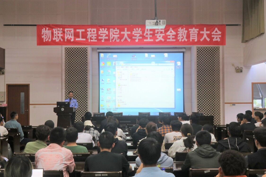 4月26日下午,物联网工程学院在学院D328召开大学生安全教育大会,邀请滨湖区警官刘惠亮担任主讲嘉宾,全体班团干部参加活动。大会由学院党委副书记、副院长孔丽丹主持。