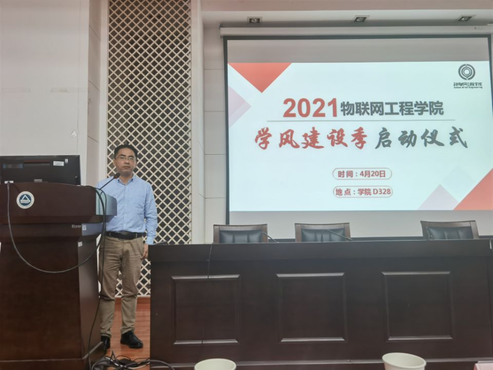 4月20日下午,物联网工程学院2021年度“学风建设季”启动仪式在学院D328顺利举行。学院党委副书记兼副院长孔丽丹、教学副院长陶洪峰、辅导员代表,以及各班学习委员、参与“启智”项目的同学们参与了活动。