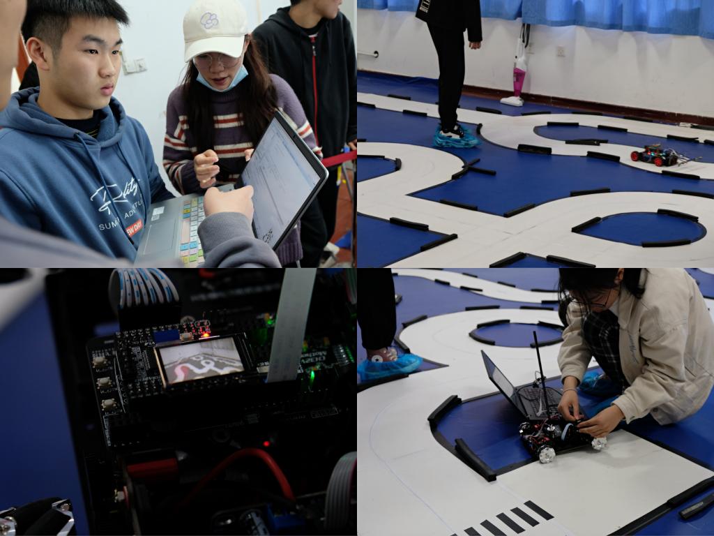 智能车俱乐部对前期报名参赛的同学进行了多次集中培训和单独指导,经过4个多月的准备,最终来自物联网工程学院、机械工程学院、人工智能与计算机学院等学院的24名学生,8支队伍进入决赛。决赛以竞速赛为基本竞赛形式,多种类型的智能车共同参与,含基础四轮组、电磁越野组、双车接力组、全向行进组、电单车拉力组,节能信标组等。竞速赛以统一规范的标准硬软件为技术平台,制作一部能够自主识别道路的模型汽车,按照规定路线行进,并符合预先公布的其他规则,以完成时间最短者为优胜。最终,经过激烈的比拼,共评选出一等奖2项、二等奖3项、三等奖3项。