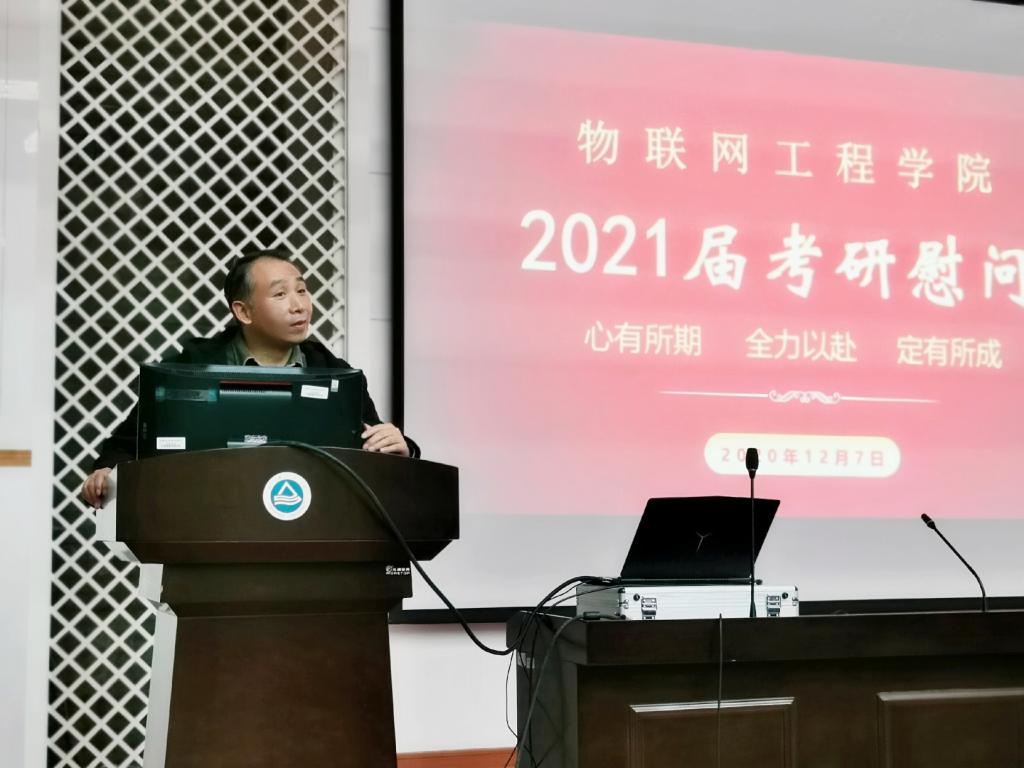 临近全国研究生考试,为引导考研学生积极备考,给予考研学子关怀和鼓励,12月7日下午,物联网工程学院2021届考研慰问在学院D328成功举行,学院党委书记程捷音,院长谢林柏,党委副书记、副院长孔丽丹,分团委书记吴垚,2017级辅导员和班主任代表,及260余名考研学子共同参加活动。活动由洪筱主持。