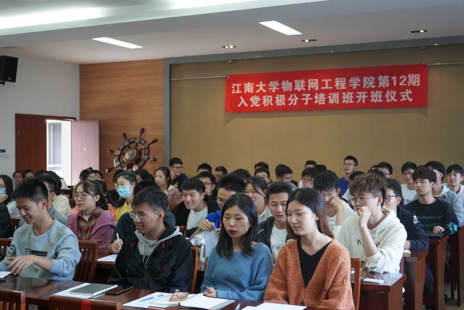 11月18日下午,物联网工程学院第12期入党积极分子培训班开班仪式暨第一次授课在学院B310报告厅顺利举行。原无锡轻工大学党委副书记、副校长李宗元,学院党委副书记、副院长孔丽丹,分团委书记吴垚、辅导员代表、学生党支部书记代表、第11期培训班优秀学员代表受邀出席活动,第12期培训班113名学员参加活动。开班仪式由王志顺主持。