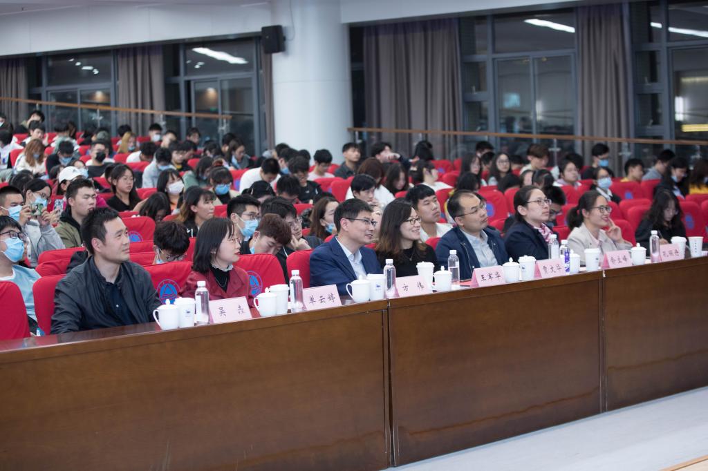 接着,方伟老师以发现热点精准选题,找准发力点深入破题,深入浅出着力答题,发掘未来应用价值全力解题四个方面的内容,向在场同学进行了选题解析,并以上届获奖作品“基于STM32芯片、蓝牙传输技术和医疗大数据分析的婴幼儿动态健康分析系统”、“基于无人机图像拍摄和大数据分析下的农作物病害防治”为例做了详细讲解。同时他鼓励同学们要深入思考创新点,并以视频网站广告盈利的例子,启发大家要激发创意,努力做出富有创造性的作品。发布会还邀请了第三届冠军团队代表吴永聪学长作经验交流,他从方案选定、方案介绍、队友选择、最终答辩、心得体会等方面进行了专题分享,并强调创新要建立在深入的调研的基础上,要通过使用科研的方法开展创新实践。在最后的互动环节中,吴垚老师就赛题评审标准等问题回答了现场参会同学的提问。