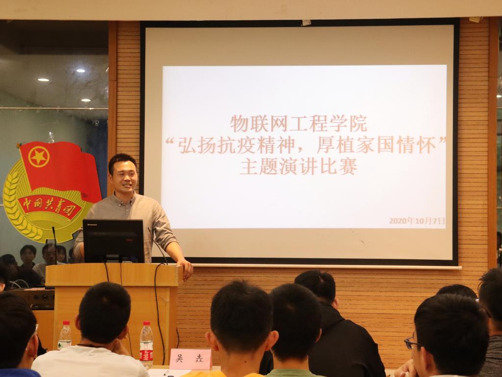 近日,为了弘扬爱国主义精神,并结合开学入学教育弘扬的伟大抗疫精神,江南大学物联网工程学院特举办了以"弘扬抗疫精神,厚植家国情怀"为主题的演讲比赛。本次比赛以学院团支部开展的“弘扬抗疫精神,厚植家国情怀”主题团日活动进行组织,共有24人报名参加了本次演讲比赛。比赛分为初赛和决赛两个部分。决赛于10月7日举行,共有12名同学进入决赛,学院分团委书记兼学工办主任吴垚、学生会主席团成员参加活动并担任评委。