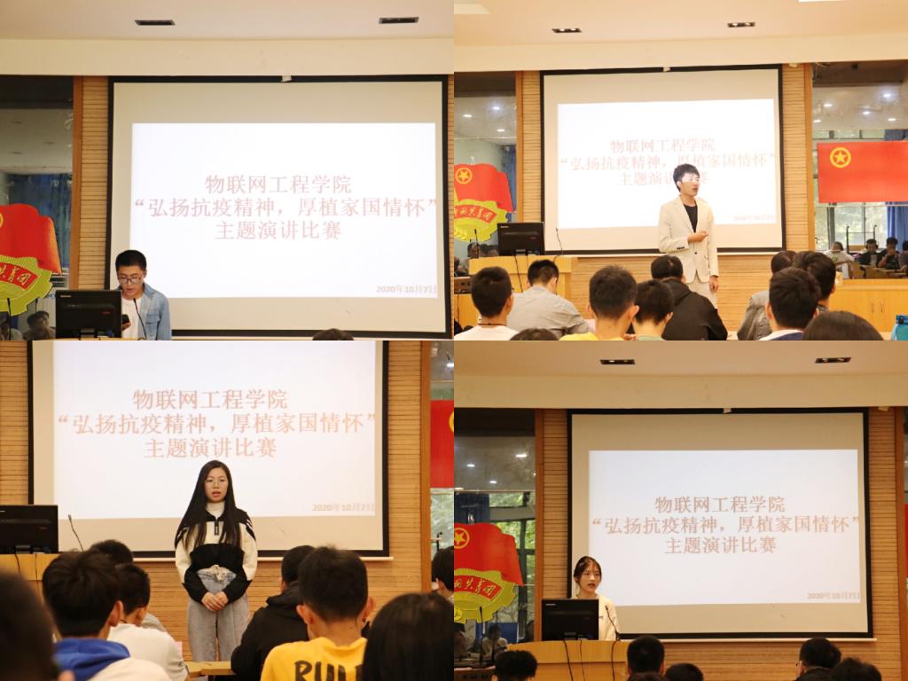莘莘学子厚植家国情怀,三尺舞台尽展青春风华。此次比赛为同学们提供了锻炼自我、展示自我的平台,更让大家真真切切地感受着何谓“家与国”,以及大国抗疫中的责任意识与使命担当。此次的演讲比赛也是物联网工程学院在国庆期间"同心抗疫,青春担当"一系列的主题活动之一,除演讲比赛外,学院还集中组织观看了《我们一起走过》、《辉煌中国》、《同心战“疫”》等纪录片,开展了观看升国旗、“我和国旗合影”的微博接力活动以及“国庆江大行,寻红色记忆”校园打卡等活动,都深深地凝聚了学生的家国情怀,坚定了学生艰苦奋斗的信念,为今后的学习生活注入了不懈奋斗的精神动力。